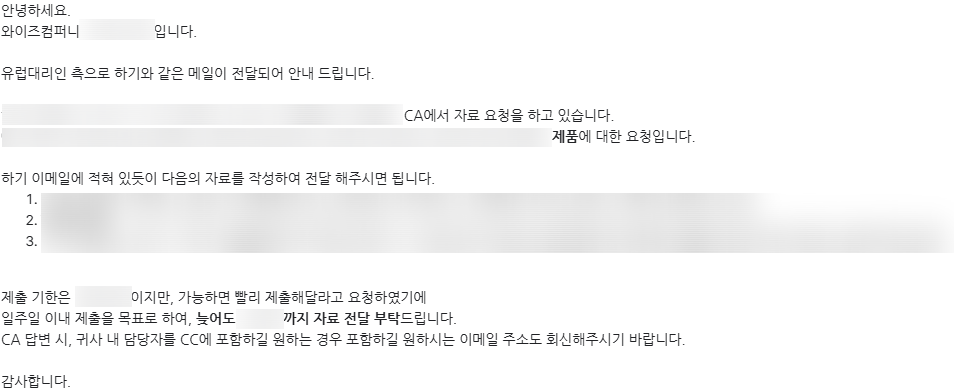 유럽 내 제품을 유통하다 보면, incident가 아닌 루틴한 시장 감시의 일환으로 #관할 당국(CA)에서 자료 요청을 하는 경우가 종종 발생합니다.